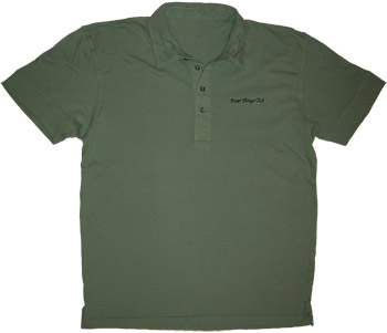 "Finer Things Club" is embroidered in black thread on a dillweed colored 100% cotton